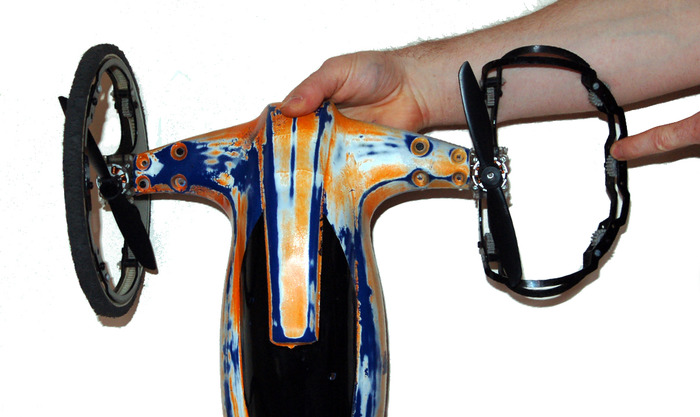 Urządzenie zostało przemyślane pod kątem wytrzymałości, tak aby przykładowo nie uszkadzać się przy upadku z dużej wysokości. Połączenie podwozia z nadwoziem wykonano z tworzyw sztywnych, umożliwić miało to osiągnięcie lekkiej konstrukcji, która utrzymuje swój kształt w trakcie lotu lub jazdy oraz jest wystarczająco elastyczne, aby wchłonąć nadmiar sił generowanych podczas lądowań czy zderzeń.