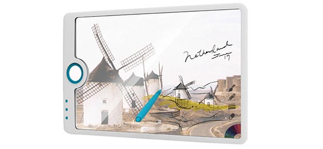 Dziura w bocznej części obudowy, do umieszczenia palca, sprawia, że korzystanie z urządzenia staje się praktyczniejsze. Do dyspozycji użytkownika pozostaje wybór koloru a także rodzaj pędzla. Rysunki będzie można później zapisać.