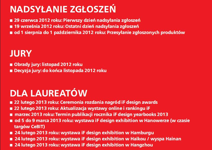 Co roku iF zaprasza do jury znane osobistości ze świata design’u, wzornictwa, biznesu, przemysłu czy edukacji aby dokładnie badały i analizowały nadsyłane produkty. W ubiegłym roku 2012, oceniono 4322 nadesłane zgłoszenia, z czego juri wyróżniło aż 1218 z nich. 100 najleprzych produktów dostało złotą nagrodę iF Golden Awards za wybitną doskonałośc w dziedzinie wzornictwa.