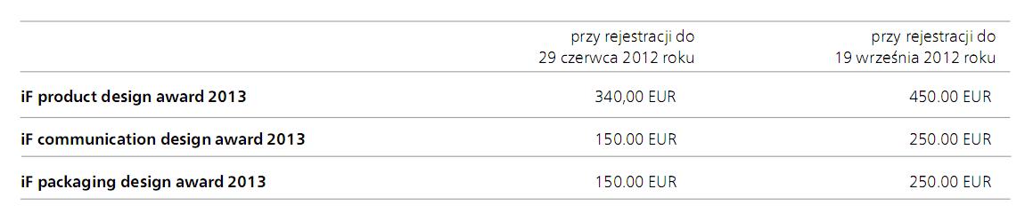 Aby zgłosić projekt wystarczy zarejestrować zgłoszenie online co powinno skutkować otrzymaniem zaproszenia do przedstawienia projektu jury. Jesli zglasza się wiecej niż jeden produkt można wysłać wszystko razem ale trzeba pamiętać aby opakowania przeznaczone do wysyki były wielokrotnego urzycia. Niestety aby wystartowac w konkursie nalezy ponieść opłaty za: usługi administracyjne, działalność jury oraz transport i przechowywanie zgłoszeń. (Tabela opłat – patrz zdjęcie poniżej).