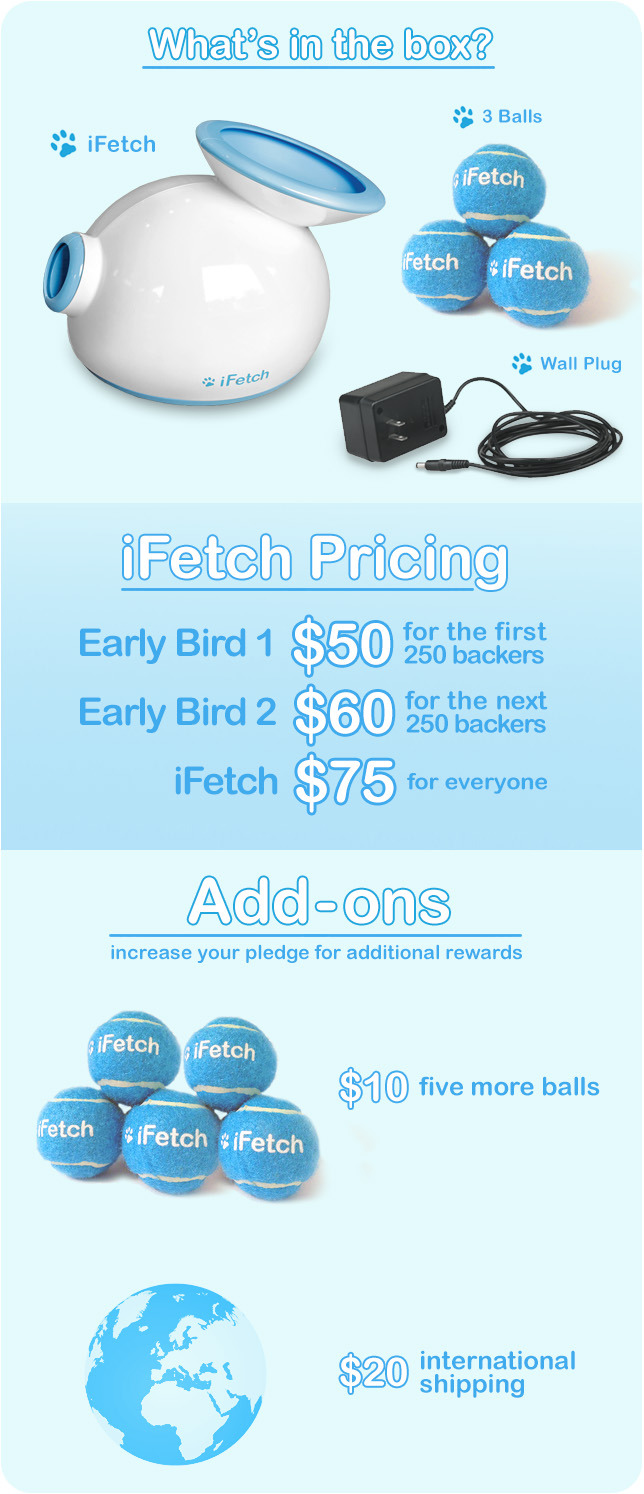 iFetch jest to urządzenie dzięki, któremu właściciele psów poznają zabawę, w aportowanie ze swoimi pupilami na nowo. W wielu przypadkach tradycyjna odsłona jednej z najpopularniejszych zabaw, polegająca na wielokrotnym rzucaniu piłki może się szybko znudzić. Twórcy iFetch znaleźli rozwiązanie dla osób, które nie mogą poświęcić wystarczającej ilości czasu na zabawy z psem lub po prostu mają dość rzucania mu piłki. Urządzenie iFetch zastępuje człowieka w tej popularnej grze.