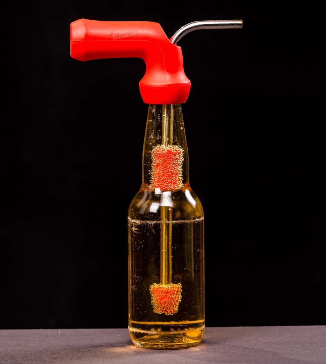 Knockout jest niewielki, bez problemu mieści się w kieszeni. Został wykonany ze stali nierdzewnej i sylikonu, dzięki czemu idealnie nadaje się do mycia w zmywarce. Nakładka pasuje praktycznie na każdą butelkę, jest hermetycznie zamknięta, daje to pewność, iż trunek się nie wyleje. Cena gadżetu została ustalona na poziomie 30$.