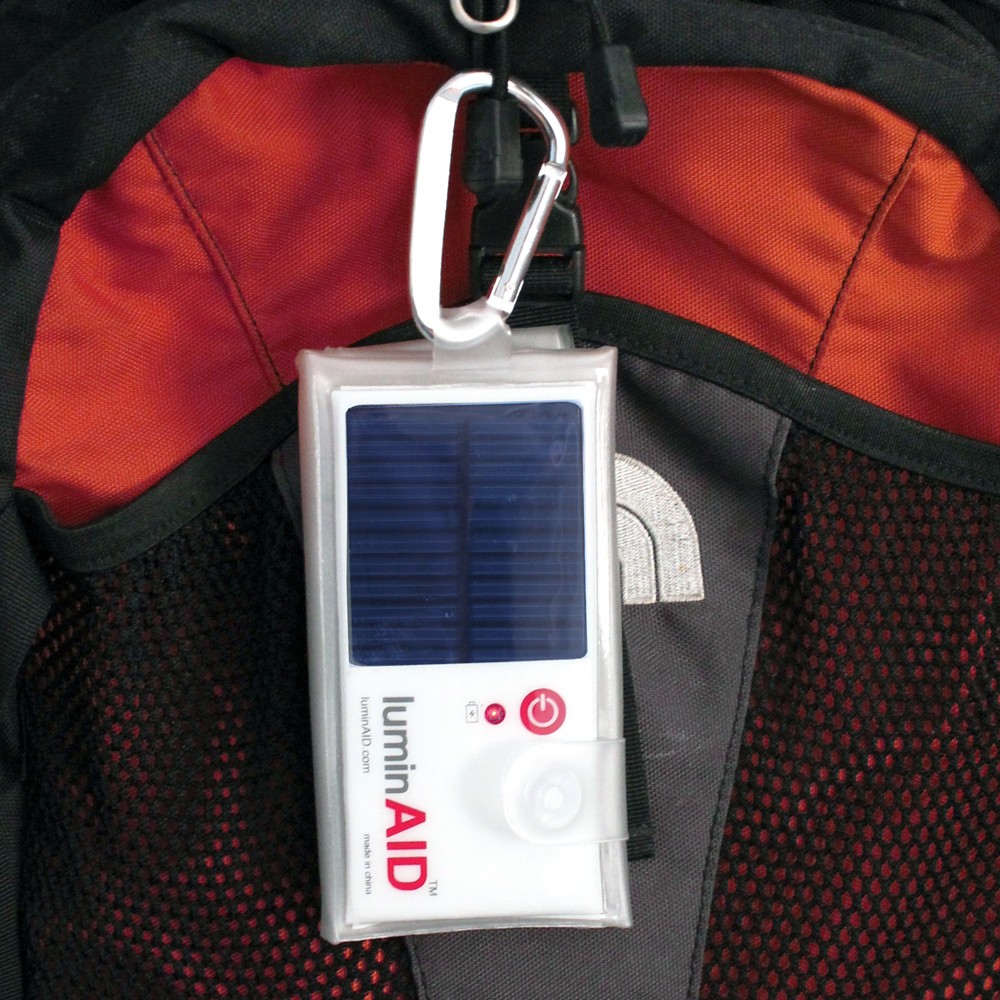 LuminAID Solar to solarna lampka składująca się z panelu słonecznego, baterii, niezbędnego oprogramowania oraz 'balona’. Dzięki temu iż urządzenie jest wodoodporne, lekkie oraz niewielkich rozmiarów może być przydatnym gadgetem na wycieczki, ponadto całość podczas gdy 'balon’ jest nadmuchany unosi się na wodzie.