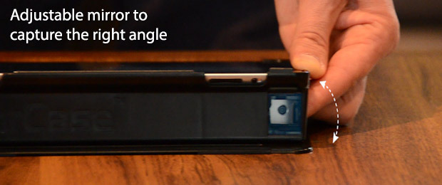 Kąt pod jakim można ustawić ekran iPad’a regulowany jest za pomocą nóżek dopasowanych do nierówności w tylnej części MirrorCase. Możliwa jest również zmienia kąta pracy kamery, co za tym idzie optymalizacja ujęć, dzięki zastosowaniu szkiełka odbijającego obraz (technika ta wykorzystywana jest w nie których aparatach fotograficznych). Produkt przystosowany jest do iPad’ów 2,3i 4 generacji, w przyszłości przewidziana jest również wersja dedykowana dla iPad’y mini.