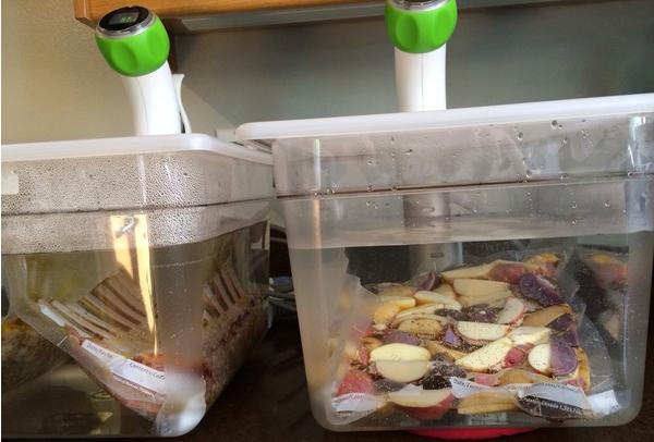 Jako typowy przykład autorzy projektu przedstawiają: Stek zrobiony metodą sous vide. 2 l wody należy ogrzać do 57 ° C, co wymaga około 0,07 kWh energii. Porównując do średniej wielkości grilla na świeżym powietrzu jest zwykle potrzeba około 3 kW mocy (przez 3 minuty z każdej strony ) do uzyskania takich samych efektów, tak więc zużyta energia mieści się w granicach 0,3 kWh. Tak więc sous vide można nazwać również ekologicznym rozwiązaniem gdyż wymaga mniej niż 1/4 energii z grilla.