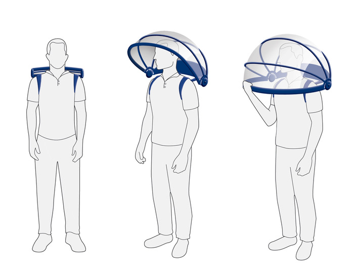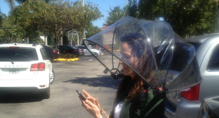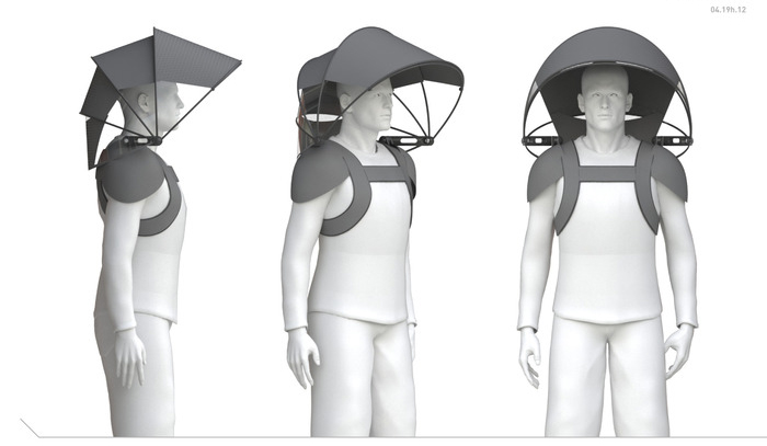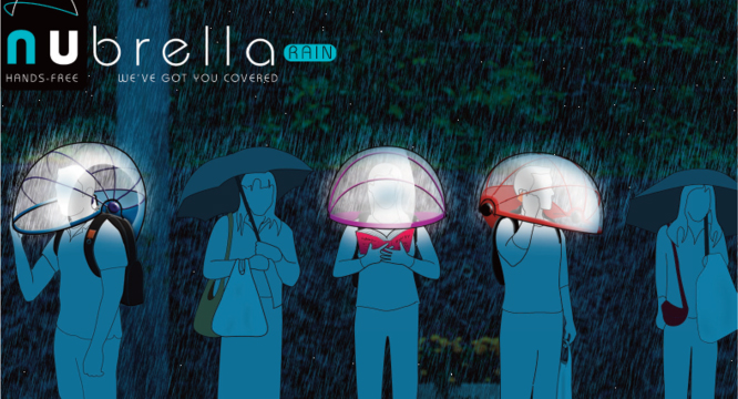 Nubrella to nietypowy parasol rozkładający się na kształt kasku,chroniąc właściciela przykładowo przed deszczem bez potrzeby przytrzymywania go. Parasol ten został stworzony dla wszystkich tych, którzy podczas deszczu,wiatru, śniegu czy rażącego słońca muszą mieć wolne ręce.
