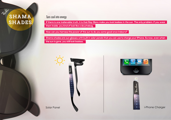 Projektanci wykorzystali cześć garderoby, którą większość osób nosi podczas słonecznych dni, dzięki temu nie trzeba będzie brać ze sobą dodatkowych ładowarek. Docelowo tego typy urządzenie miało by pozwolić na ładowanie niewielkich urządzeń mobilnych takich jak telefony czy tablety.