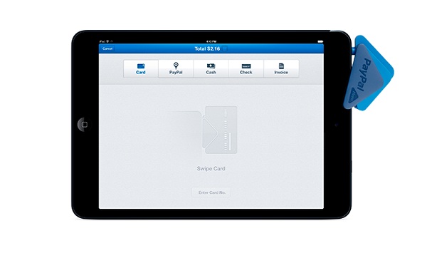 PayPal przygotował czytnik Here czyli moduł do smartfonów i tabletów, pozwalający na obsługę płatności kartą zbliżeniową. System wykorzystuje wtyczkę Mini Jack do komunikacji z aplikacją zainstalowaną na urządzeniu mobilnym.