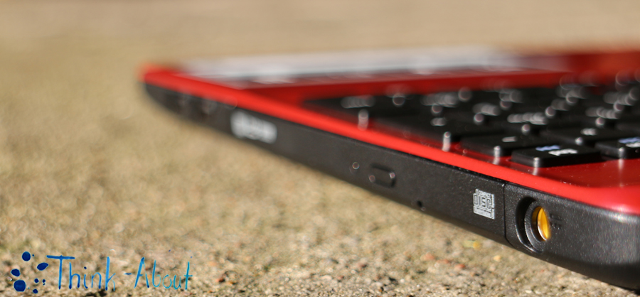 Skoro już wiemy, że płacimy za komputer, a nie jego opakowanie warto dokładniej przyjrzeć się jego budowie. Mamy więc do czynienia z klasycznym notebookiem 15,6″. Testowany przez nas egzemplarz, zgodnie z wcześniejszą zapowiedzią, otrzymał przepiękną bordową obudowę. Niejednolita farba przywodzi na myśl drewno wiśni brazylijskiej, zbliżony kolor otrzymał również touchpad. Od całości odcinają się czarne elementy stanowiące ramkę ekranu, zawiasy, klawiaturę oraz cały spód urządzenia. Oczywiście nad górną krawędzią ekranu ulokowano obiektyw kamery.
