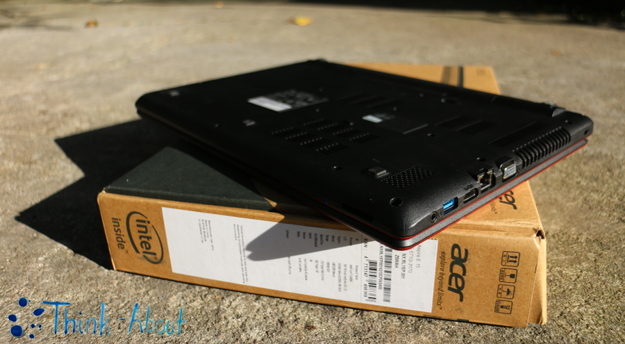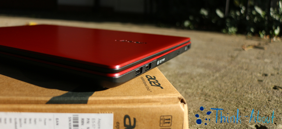 Świetne wrażenie robi jakość zastosowanych materiałów. Półmatowe, bordowe elementy są niezwykle przyjemne w dotyku, a jednocześnie odporne na zabrudzenia i zarysowania. Natomiast czarne, matowe fragmenty obudowy, mimo dość surowego wyglądu doskonale pasują do całości. Jesteśmy gotowi przyznać że konstrukcja Aspire E 15 oparta została na najlepszym tworzywie jakie mieliśmy okazję dotychczas dotykać.