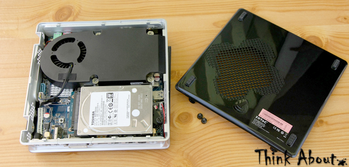 Mimo niewielkich rozmiarów i pewnych utrudnień technologicznych istnieje możliwość przeprowadzenia upgrade specyfikacji sprzętowej w stopniu nieco większym niż w przypadku laptopa. Po otwarciu obudowy oczom użytkownika ukazuje się zminiaturyzowana płyta główna, jednak ułożona tak że zmiana dysku czy pamięci nie powinna sprawić problemu nawet mało zaawansowanym użytkownikom. Po zdjęciu chłodzenia możliwe jest również dostanie się do procesora. Na płycie głównej znalazło się również miejsce na jeden dodatkowy port SATA.