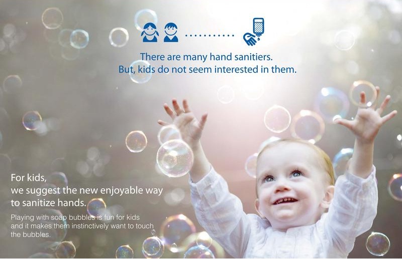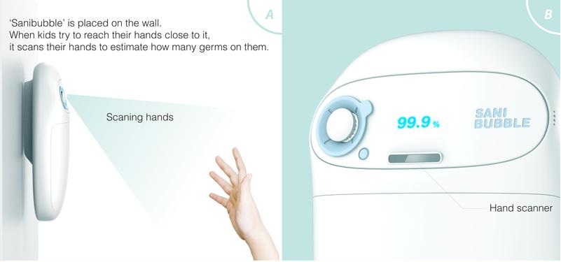 Sekretem Sanibubble jest to, że pomaga on utrzymać higienę poprzez zabawę. Wystarczy pomachać ręką przed urządzeniem aby wypuściło ono bańki mydlane. Dzieci instynktownie chcą je dotykać. Wbudowany skaner wykryje także poziom zabrudzenia dłoni, dzięki temu ilość środku bakteriobójczego, w każdej bańce, dozowana będzie indywidualnie.