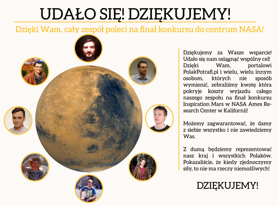 Jakiś czas temu grupa polskich studentów z Politechniki Wrocławskiej postanowiła wziąć udział w międzynarodowym konkursie Inspiration Mars. Zadaniem konkursowym było zaprojektowanie misji wylotu na Marsa, okrążenia Czerwonej Planety i powrotu na Ziemię. Polacy jako jedna z dziesięciu drużyn dostała się do finału.