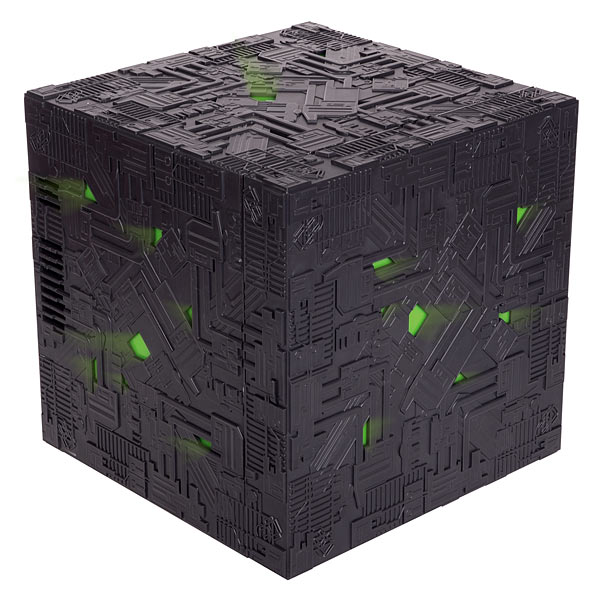 Zgodnie z wędrującym w przestrzeni kosmicznej pierwowzorem, Borg Cube Fridge iluminuje silnym zielonym światłem – zarówno na zewnątrz jak i wewnątrz. Pojemność jest szacowana na 9 puszek napojów gazowanych przy zewnętrznych wymiarze boku sześcianu 29 cm.