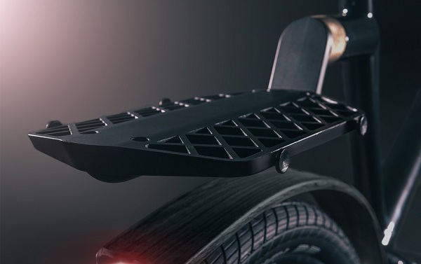 Wyróżnikiem, są jednak wysuwane akcesoria umieszczone z tyłu przedłużenia ramy. Tuż pod dedykowaną lampką tylną, mieści się otwór z którego w razie załamani pogody, może zostać wyciągnięty elastyczny błotnik. Nad nim umieszczono stalową linkę zabezpieczającą, kompatybilną z dedykowaną kłódką.