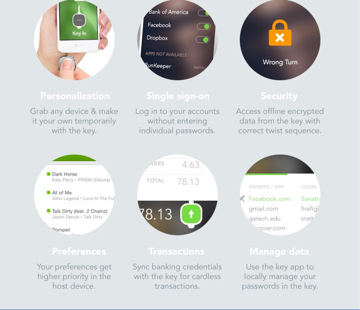 Jest to koncept małego, personalnego klucza który wielkością przypomina brelok. Wystarczy włożyć go do urządzenia z którego korzystamy, przekręcić i gotowe, wszelkie personalne internetowe dane w zasięgu ręki.