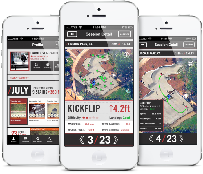 Pierwsza z aplikacji – do skatingu, zliczać będzie ilość poszczególnych trików, ich poprawność wykonania czy właściwe lądowanie. Przejechane trasy oznaczać będzie można na mapach co pozwoli na łatwiejsze dobieranie czy poznawanie nowych miejsc. Po wybraniu konkretnej trasy, użytkownicy uzyskają podgląd stopnia jej trudności i statystyk przejazdu, które można pobić. Oprócz tej opcji każdy użytkownik będzie mógł posiadać swój profil, gdzie aplikacja zliczać będzie wykonane triki, ich szczegóły oraz przejechane trasy.