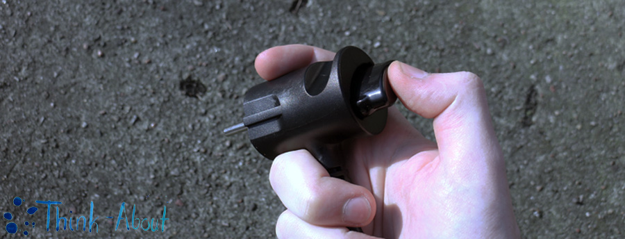Aby wypiąć wtyczkę z gniazdka, wystarczy chwycić ją palcem środkowym i wskazującym, a następnie wcisnąć przycisk za pomocą kciuka. Wgłębienia oferują zaskakująco pewny i wygodny chwyt, natomiast sprężynowy mechanizm przycisku działa naprawdę lekko. Działanie wtyczki zostało oparte na prostym rozwiązaniu – w chwili naciśnięcia przycisku, obok bolców wtyczki wysuwają się plastikowe ułatwiającej jej wyciągnięcie.