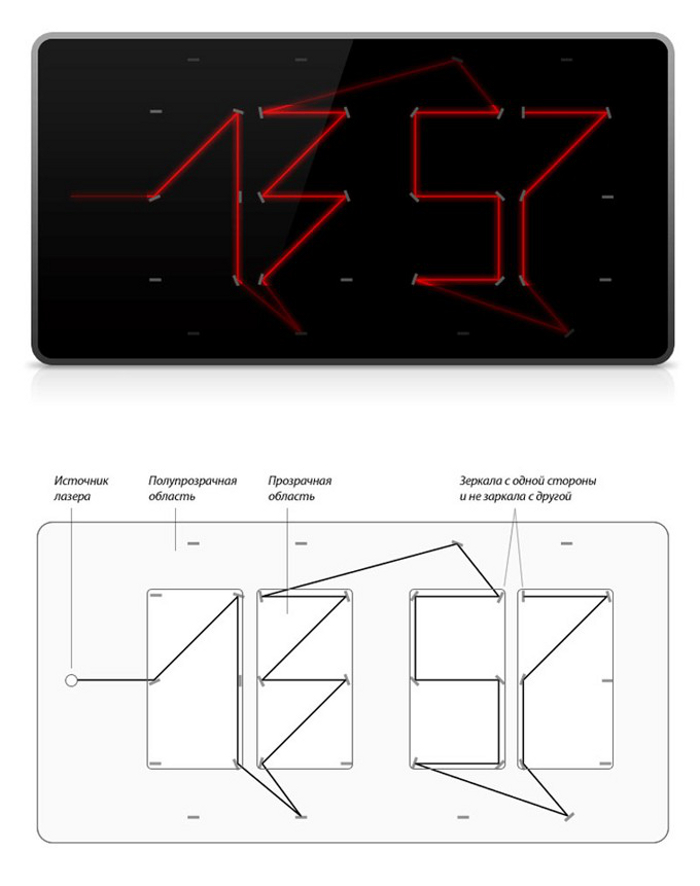 Reflectius to koncepcja zegara w którym do tworzenia cyfr ma posłużyć czerwony laser odbijający się od sześćdziesięciu wirujących luster.